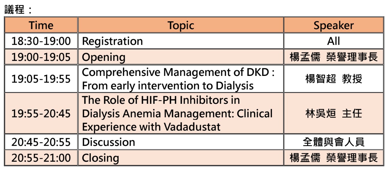 講師:高雄長庚醫院 腎臟科 楊智超 教授 / 部立基隆醫院 腎臟科 林吳烜 主任