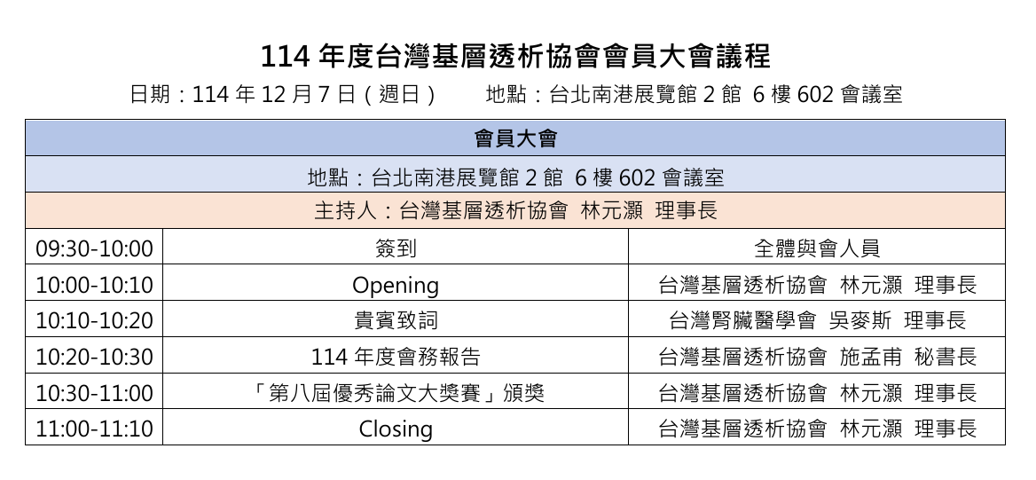 報到處:台北南港展覽館2館 7樓 (腎臟醫學會國內報到處旁)